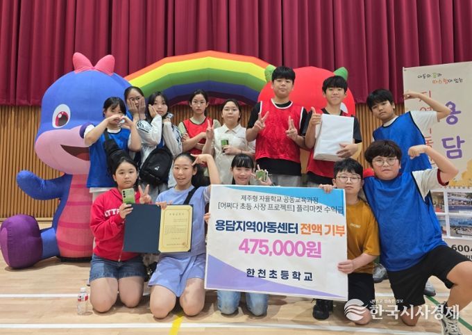 한국시사경제 한장선 객원기자 | 제주도교육청 한천초등학교는 14일 제주형 자율학교 공동교육과정 ‘어쩌다 초등 사장 활동’ 플리마켓 수익금 47만5000원을 용담지역아동센터에 기부했다.