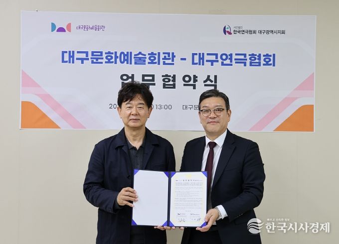 한국시사경제 대구취재본부 | (재)대구문화예술진흥원 대구문화예술회관은 대구연극협회와 업무협약(MOU)을 체결하고, 지역 연극 생태계 강화와 지속 가능한 성장 기반 마련을 위해 협력하기로 했다.