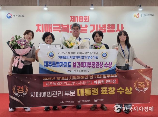 한국시사경제 윤경수 기자 | 제주특별자치도가 제18회 치매극복의 날을 맞아 치매예방·관리 성과를 국가적으로 인정받아 대통령 표창과 보건복지부장관상을 동시에 수상했다고 밝혔다.