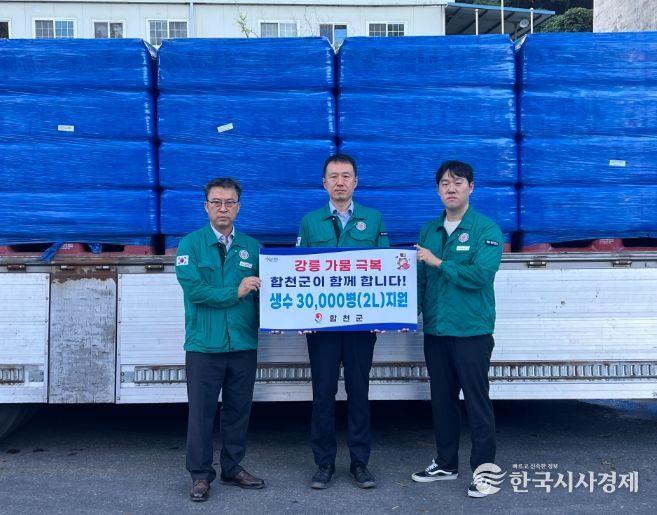 한국시사경제 윤경수 기자 | 합천군은 극심한 가뭄으로 생활용수 공급에 어려움을 겪고 있는 강원특별자치도 강릉시에 생수 2리터 3만 병을 긴급 지원한다고 16일 밝혔다.