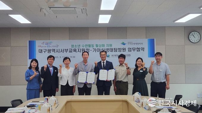 한국시사경제 대구취재본부 | 대구서부교육지원청은 9월 17일 가야산생태탐방원과 청소년 수련활동 활성화를 위한 업무협약을 체결했다.