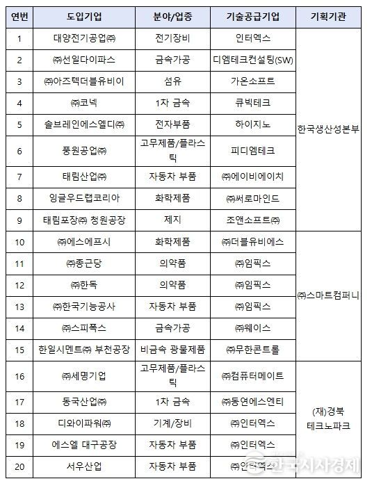 작년 선정기업 중 우수사례를 발표한 ㈜코아비스는 온도와 외부먼지 등에 취약한 자동차부품 생산라인에 무인 환경을 구축하고 가상현실에서 인공지능 기술을 활용해 최적의 공정관리·제어를 구현했다. 그 결과 생산성이 56% 향상됐고 공정설비 트러블도 20% 감소했다.