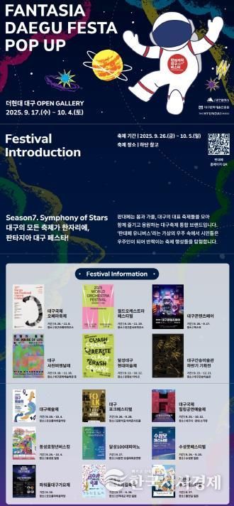 한국시사경제 대구취재본부 | 2025 판타지아대구페스타 가을 축제가 일곱 번째 시즌(Season7. Symphony of Stars 별들의 노래)을 맞아, 대구를 대표하는 15개 축제를 소개하는 팝업 전시와 함께 다양한 이벤트로 시민들을 찾아간다.