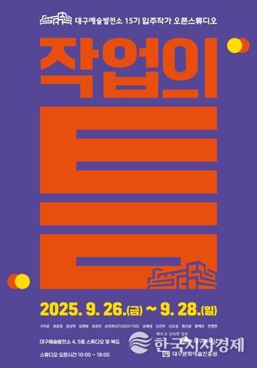 한국시사경제 대구취재본부 | 대구문화예술진흥원 문화예술본부는 오는 9월 26일부터 9월 28일까지 3일간 15기 입주작가 오픈스튜디오 ‘작업의 틈’을 대구예술발전소 4·5층 스튜디오 및 복도에서 개최한다.