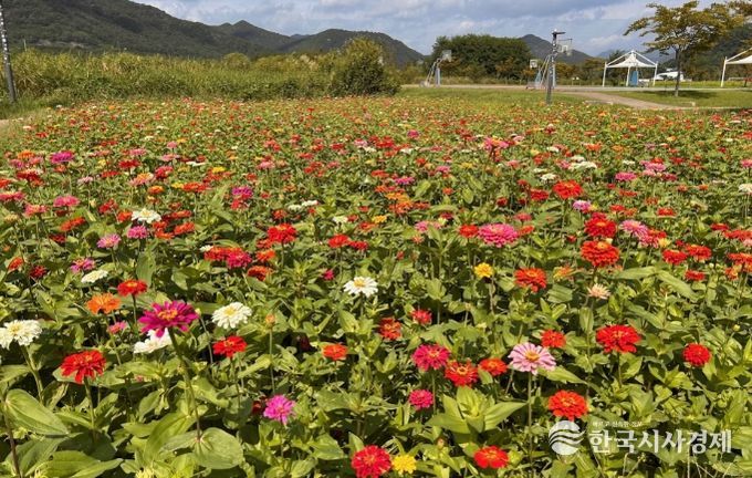 한국시사경제 윤경수 기자 | 황산공원의 여름 끝자락이 백일홍의 매력적인 자태로 빛난다. 황산공원 중부광장에서 낙동강 쪽으로 산책하다보면 농구장 맞은편 3,500m2 면적에 백일홍꽃들이 화려하게 만개했다.