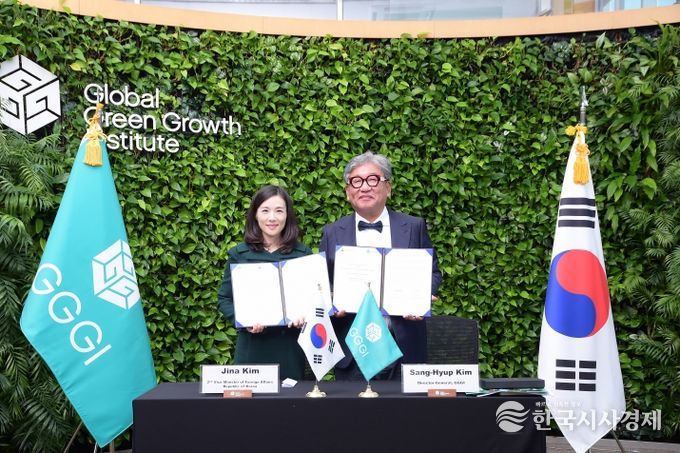한국시사경제 해외팀 | 김진아 외교부 2차관은 9월 22일 서울 정동에 위치한 글로벌녹색성장연구소 본부에서 개최된 외교부와 GGGI간 2025년 핵심 공여 양해각서(MOU) 서명식에 참석하여, 김상협 GGGI 사무총장과 직원들을 격려했다.