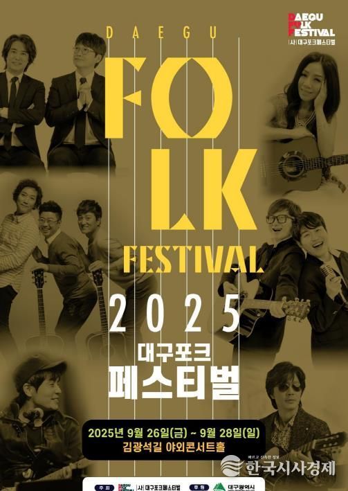 한국시사경제 대구취재본부 | 대구광역시와 (사)대구포크페스티벌은 오는 9월 26일부터 9월 28일까지 3일간, 김광석길 야외콘서트홀 일원에서 ‘2025 대구포크페스티벌’을 개최한다.