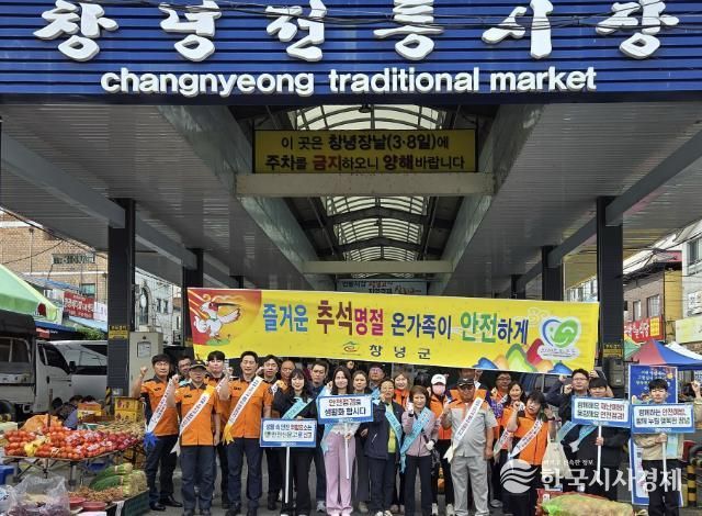 이번 캠페인은 다가오는 추석 명절을 맞아 창녕군, 창녕소방서, 안전보안관, 의용소방대 등 30여 명이 참여해 전통시장 주변의 위험요소를 점검하고, 방문객들에게 가을철 안전 위험요인 집중 신고기간을 홍보했다.