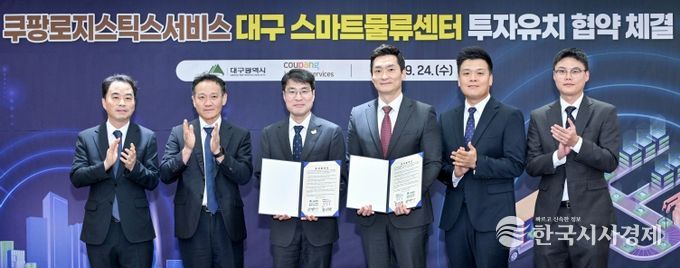 한국시사경제 대구취재본부 | 대구광역시는 9월 24일 오후 4시 30분, 시청 동인청사 2층 상황실에서 국내 택배부문 1위 기업인 ‘쿠팡로지스틱스서비스(유)’(대표 홍용준, 이하 ‘쿠팡로지스틱스서비스’)와 수성알파시티 내 첨단 스마트물류센터 구축을 위한 투자유치 협약을 체결했다.