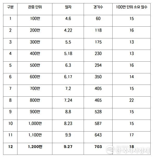 한국시사경제 스포츠팀 | 2025 신한 SOL뱅크 KBO 리그가 1,200만 관중을 달성했다.