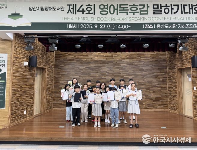 한국시사경제 윤경수 기자 | 양산시립영어도서관은 지난 27일 웅상도서관 지하 공연장에서 열린 제4회 영어독후감 말하기대회를 성황리에 마쳤다고 밝혔다.