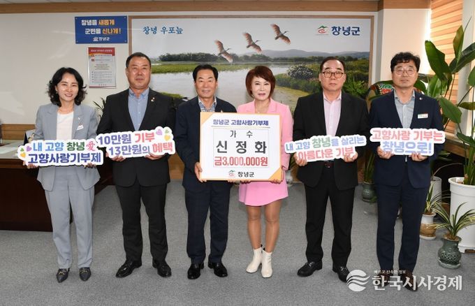 한국시사경제 윤경수 기자 | 창녕군은 가수 신정화 씨가 고향사랑기부제에 300만 원을 기탁했다고 30일 밝혔다.