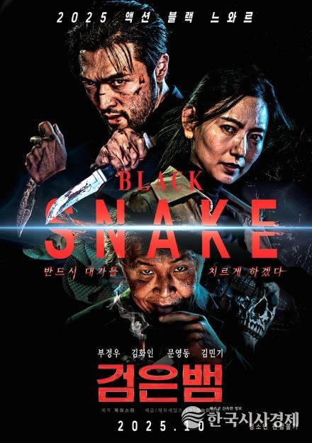 한국시사경제 연예팀 | 10월 개봉을 확정한 영화 '검은뱀'이 2025년을 사로잡은 고자극 액션 영화의 계보를 이을 기대작으로 주목받는다.[감독 : 박도환 | 출연 : 부정우, 김화인, 문영동, 김민기, 기주봉 외 | 제작 : 케이스타 | 배급 : ㈜이놀미디어 | 등급 : 청소년관람불가]
