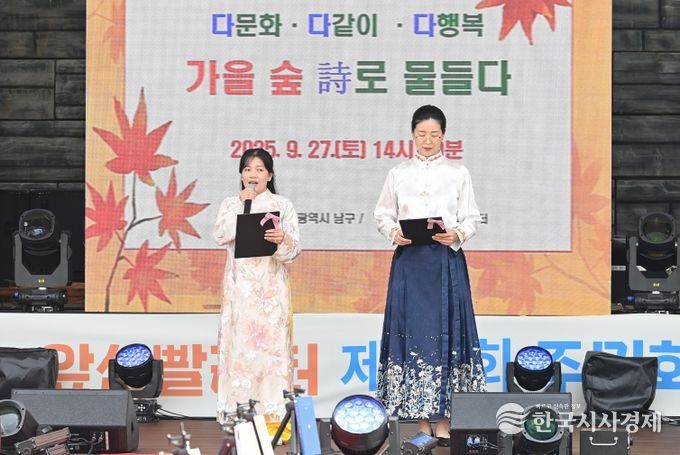 한국시사경제 대구취재본부 | 대구 남구는 깊어 가는 가을을 맞아 지난 27일 앞산빨래터공원에서 「다문화 가족과 함께하는 가을 숲속 詩낭송회」를 개최했다.