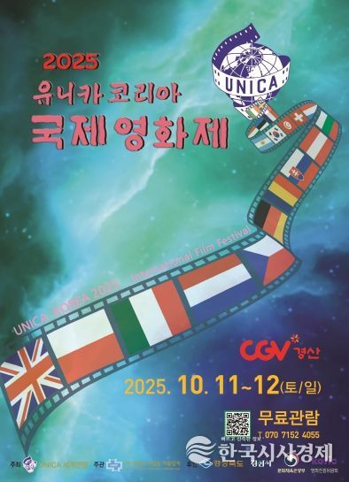 한국시사경제 한장선 객원기자 | 경산시에서는 2025 유니카 코리아 국제영화제(2025 UNICA KOREA International Film Festival)가 10월 11일과 12일 양일간 CGV 경산(3관)에서 개최된다고 밝혔다.