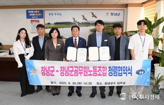 한국시사경제 윤경수 기자 | 창녕군은 지난 9월 30일 군수실에서 창녕군공무원노동조합과 함께 군민에게 신뢰받는 청렴 문화를 확산시키기 위한 ‘청렴 협약’을 체결하고 간담회를 가졌다고 밝혔다.