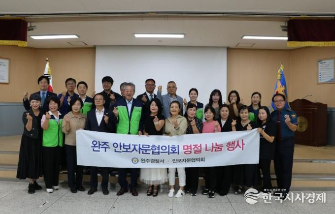 한국시사경제 김숙영 기자 | 완주경찰서는 추석명절을 맞이해 지난 29일, 추석명절을 맞이하여 군의회 김재천 부의장, 이순덕 의원 및 안보자문협의회, ㈜정석케미칼, 삼례·봉동 로타리클럽, 봉동로타리클럽등 30여명은 탈북민을 위한 따뜻한 사랑 나눔 행사를 가졌다.