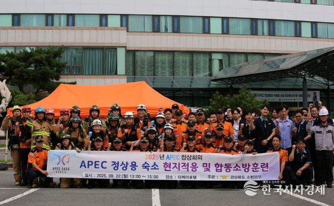한국시사경제 오영주 기자 | 경상북도 소방본부는 2025년 에이팩(APEC) 정상회의 기간중 소방대원들의 현장 적응력 등 대응역량 강화를 위해 9월부터 추진해 온 합동소방훈련 및 현지적응훈련을 10월 1일 경주화백컨벤션센터 훈련을 끝으로 모두 완료했다고 밝혔다.
