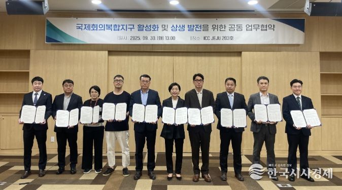 한국시사경제 한장선 객원기자 | 제주국제컨벤션센터(대표이사 이선화, 이하 ICC JEJU)는 9월 30일(화) 신라호텔 제주, 롯데호텔 제주, 파르나스호텔 제주 등 제주국제컨벤션센터 주변 숙박 및 관광시설 11곳과 ‘제주 국제회의복합지구 활성화 및 상생 발전을 위한 업무협약’을 체결했다.