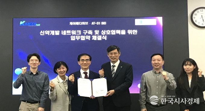 한국시사경제 대구취재본부 | 케이메디허브 신약개발지원센터와 ㈜AT-31 BIO가 신약개발 역량 강화 및 산업 생태계 활성화를 위한 전략적 업무협약을 체결했다.