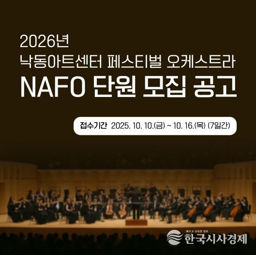 김형찬 강서구청장은 “낙동아트센터 페스티벌 오케스트라는 개관을 함께할 상징적인 음악 프로젝트로, 역량 있는 음악가들의 많은 참여를 기대한다”며 “이번 무대가 부산 서부권 문화예술의 새로운 도약이 될 것”이라고 말했다.