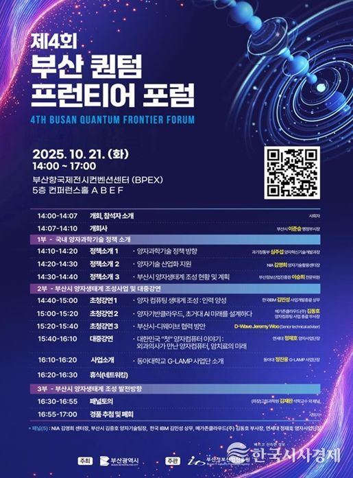 한국시사경제 김숙영 기자 | 부산시는 오는 10월 21일 오후 2시 부산항국제전시컨벤션센터 컨퍼런스홀에서 '제4회 부산시 퀀텀 프런티어 포럼'을 개최한다고 밝혔다.