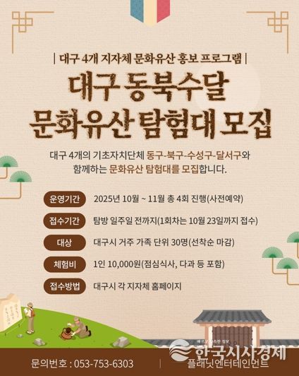 한국시사경제 대구취재본부 | 대구 수성구, 동구, 북구, 달서구가 협력해 지역의 역사와 문화를 함께 배우고 체험하는 ‘대구 문화유산 탐험대’ 운영을 시작한다.