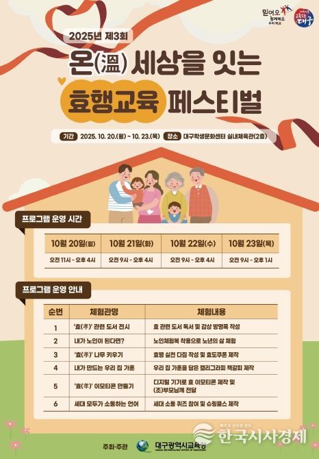 한국시사경제 대구취재본부 | 대구시교육청은 학생들이 웃어른을 공경하고 존중하는 마음을 기르며, 세대 간 소통과 화합을 이루기 위해 ‘온(溫)세상을 잇는 효행교육 페스티벌’을 개최한다고 밝혔다.