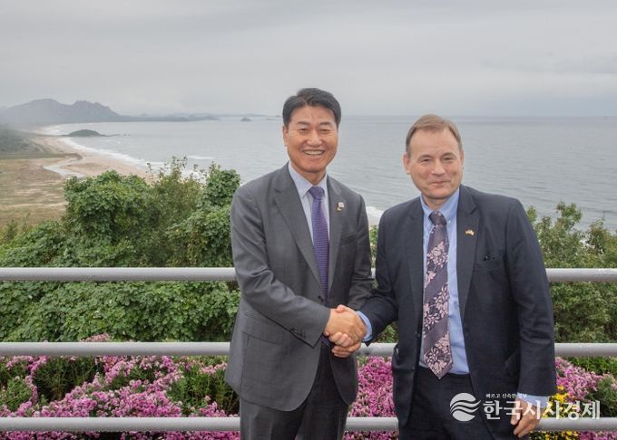 한국시사경제 해외팀 | 평화 경제 거점 도시 강원 고성군은 10월 15일, 게오르크 빌프리드 슈미트(Georg Wilfried Schmidt) 주한 독일대사가 고성군을 방문했다고 밝혔다. 이번 방문은 지난 5월 9일 ‘2025 유럽데이(Europe Day)’ 행사에서 함명준 고성군수와의 첫 만남 이후 두 번째 교류로, 평화와 통일의 상징 도시로 자리매김한 고성군과 독일 간 협력관계가 한층 강화되는 계기가 됐다.