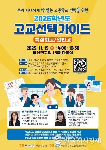 한국시사경제 부산취재본부 | 부산 부산진구는 11월 15일 토요일 오후 2시 구청 15층 다복실에서 ‘2026학년도 고교선택가이드 현장 설명회’를 개최한다고 밝혔다.