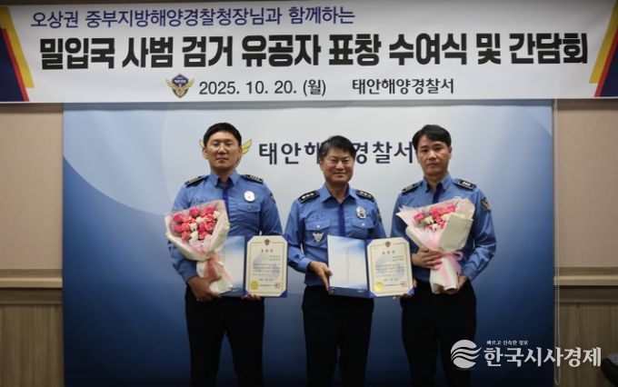 한국시사경제 김숙영 기자 | 중부지방해양경찰청은 지난 20일, 태안해경서 소회의실에서 최근 태안 해상에서 발생한 밀입국 사범 검거와 관련해 유공자 표창 수여 및 간담회를 개최했다고 밝혔다.