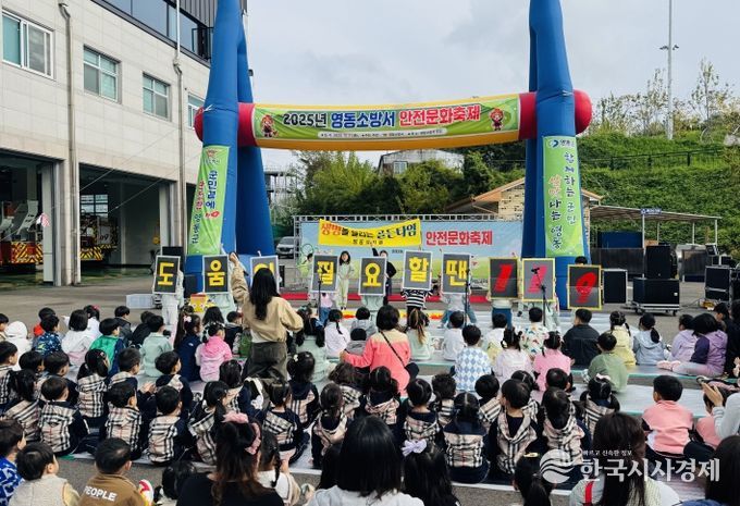 한국시사경제 오영주 기자 | 영동소방서는 21일 본서 후정 및 차고에서 지역 유치원(어린이집) 원생 및 지도교사를 대상으로‘2025년 어린이 119한마당 대축제’행사를 개최했다.