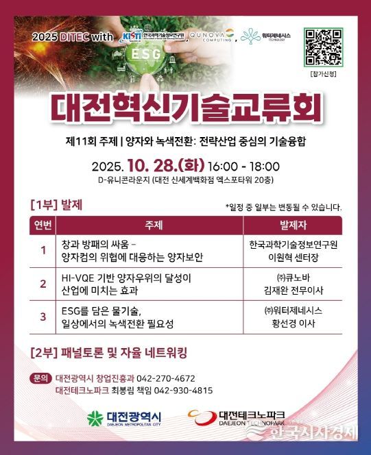 한국시사경제 디지털 뉴스팀 | 대전시는 오는 10월 28일 대전신세계 엑스포타워 20층 유니콘 라운지에서 ‘제11회 대전혁신기술교류회(DITEC)’를 개최한다.