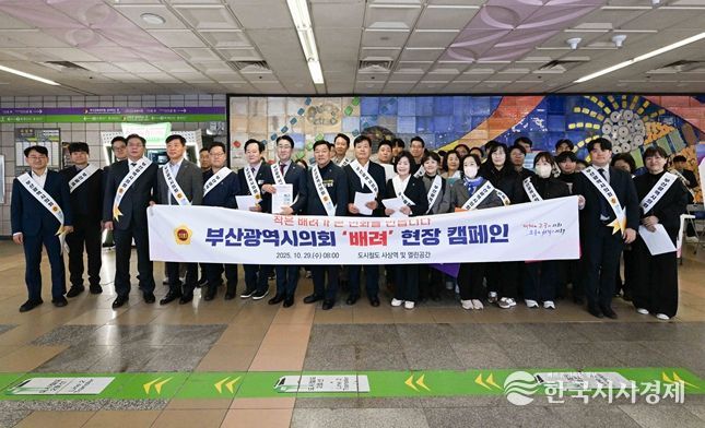 한국시사경제 권충언 기자 | 부산광역시의회는 10월 29일 오늘 오전 8시, 도시철도 사상역 역사 및 야외 열린공간에서‘부산광역시의회 공익캠페인 '배려〉’ 현장 캠페인과 함께‘찾아가는 현장소통’제2회 행사를 통합 개최했다.