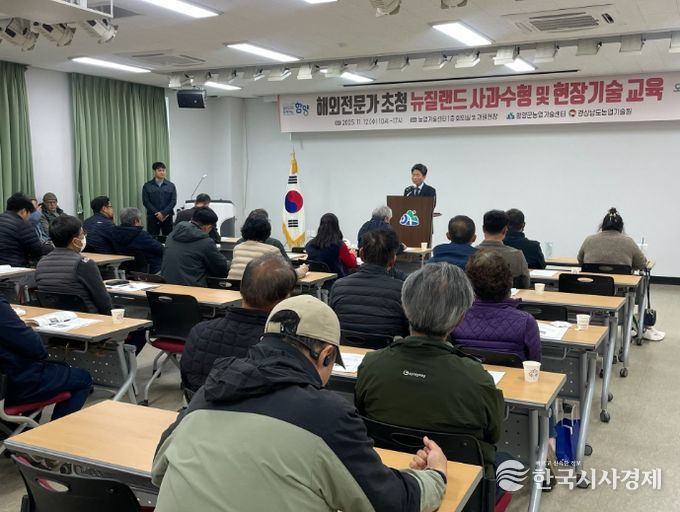 한국시사경제 경남취재본부 | 함양군은 경남농업기술원과 함께 지난 12일, 농업기술센터에서 ‘해외전문가 초청 뉴질랜드 사과수형 및 현장기술 교육’을 진행했다.
