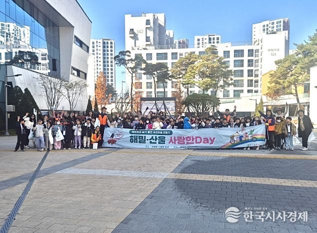한국시사경제 세종취재분부 | 세종특별자치시 해밀동주민자치회(회장 이옥배)가 12일 해밀유치원, 해밀초등학교와 함께 ‘쓰담 걷기’ 행사로 환경 정화 활동을 펼쳤다.