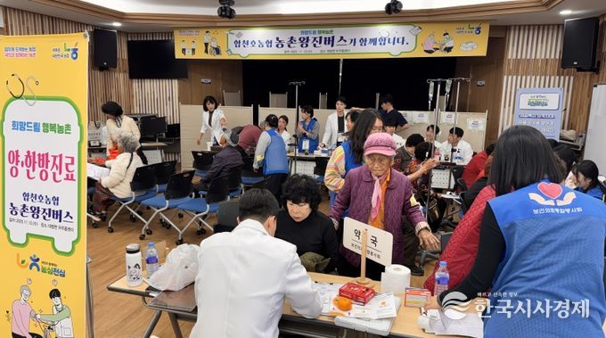 12일 합천군과 합천농협은 대병면 아우름센터에서 대병면과 용주면 주민 300명을 대상으로 찾아가는 의료서비스인 ‘농촌 왕진버스’를 시행했다.