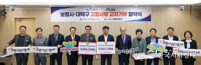 한국시사경제 대전취재본부 | 대전 대덕구는 13일 충남 보령시와 보령시청에서 ‘고향사랑기부제 교차 기부 및 상호협력 업무협약’을 체결하며 지역 상생의 새로운 교류에 나섰다.