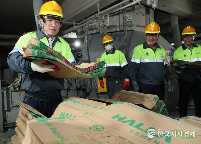중앙통제실 점검 이후 김 지사는 시멘트 생산 현장으로 이동해 빈 포대 운반, 포장작업, 공장 정화 활동 등에 직접 참여하며 근로자들과 소통했다.