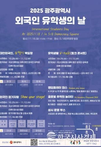 한국시사경제 광주취재본부 | 광주광역시는 오는 18일 오후 1시부터 5시까지 5·18민주광장 일원에서 ‘2025 광주 외국인 유학생의 날’ 행사를 개최한다.