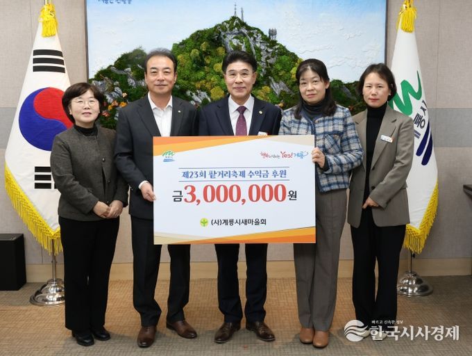한국시사경제 김태훈 기자 | 계룡시는 지난 13일 (사)계룡시새마을회에서 제23회 팥거리축제 수익금 3백만원을 시에 기탁했다고 밝혔다.