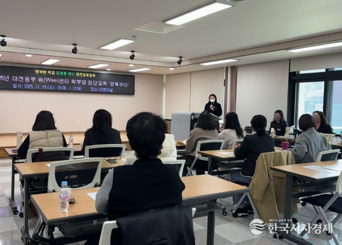 한국시사경제 대전취재본부 | 대전동부교육지원청은 11월 19일 본관 대회의실에서 동부 관내 초·중학교 학부모를 대상으로 자살 예방 리터러시 부모 교육 『양육 수다』를 운영했다고 밝혔다.