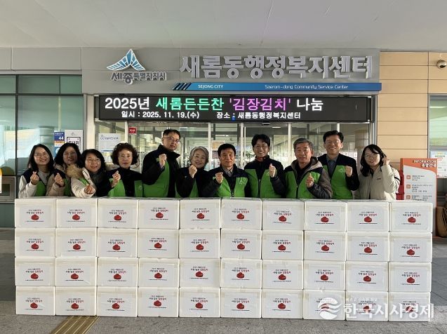 한국시사경제 세종취재분부 | 세종특별자치시 새롬동지역사회보장협의체(공동위원장 강신우·김지원)가 19일 취약계층 40가구에 사랑을 가득 담은 김장김치를 전달했다.