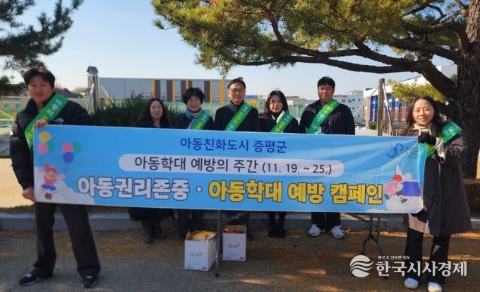 한국시사경제 충북취재본부 | 충북 증평군은 19일 아동학대예방의 날(11.19.) 및 아동학대 예방주간(11.19.~25.)을 맞아 증평초등학교 일대에서 하굣길 캠페인을 펼쳤다고 밝혔다.