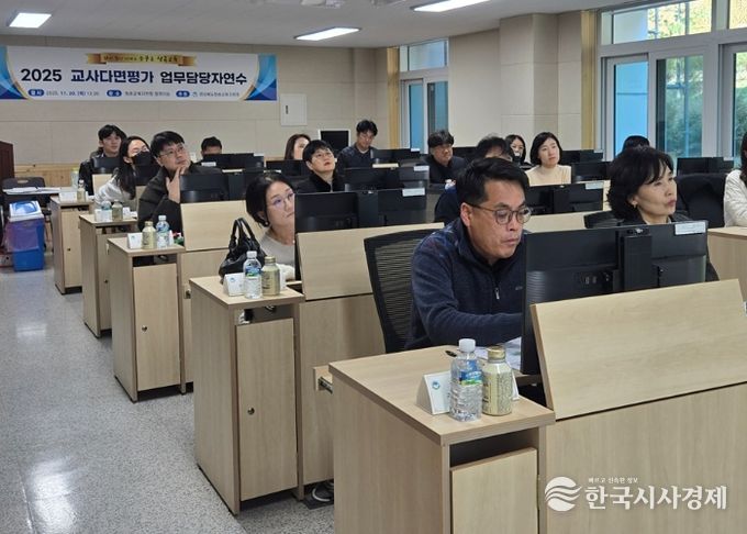 한국시사경제 경북취재본부 | 경상북도청송교육지원청은 11월 20일 13시 20분 교육지원청 컴퓨터실에서 관내 유·초·중·고 다면평가 업무 담당자 22명을 대상으로 '2025학년도 교사 다면평가 업무 역량 강화 연수'를 실시했다.