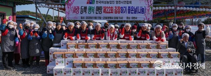 한국시사경제 경북취재본부 | 한국여성농업인 영천시연합회는 20일 금호읍 대현사에서 ‘2025년 사랑의 김장김치 담그기 및 나눔 행사’를 진행했다.