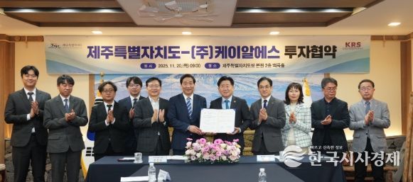 한국시사경제 경제팀 | 제주도는 20일 제주도청 백록홀에서 ‘상장기업 육성펀드 1호’ 투자기업인 ㈜케이알에스(KRS)와 본사 이전 및 투자협약을 체결했다.