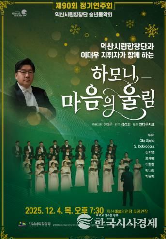 익산시립합창단은 12월 4일 오후 7시 30분, 제90회 정기연주회 '하모니-마음의 울림'을 익산예술의전당 대공연장 무대에 올린다.