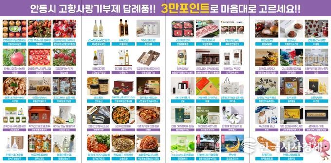 한국시사경제 경북취재본부 | 안동시는 지역경제의 활성화와 기부자 만족도 제고를 위해 2026년 고향사랑기부제 답례품 및 공급업체를 공개 모집한다고 21일 밝혔다.