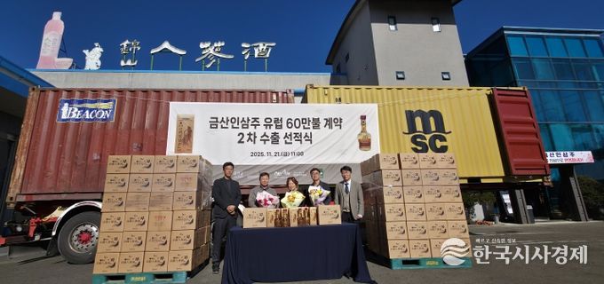 한국시사경제 경제팀 | 금산군 금성면 소재 인삼주 제조업체 ‘금산인삼주’는 지난 21일 10만 달러 규모 인삼주를 선적하며 2차 오스트리아 수출길에 나섰다.